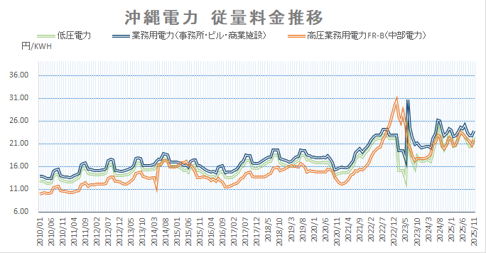 2025年10月度使用分(11月検針分)沖縄電力電力量料金推移