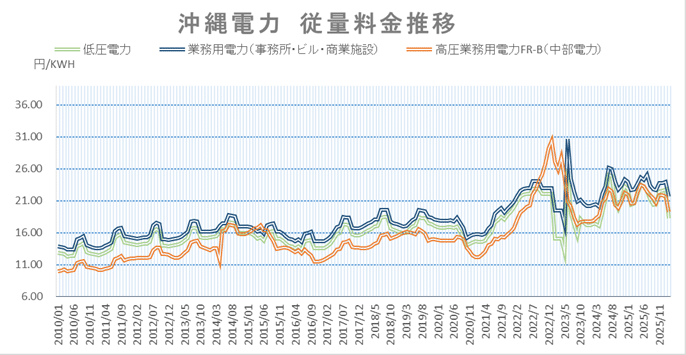 中部電力・沖縄電力の 電力量料金の定点観測 を継続していきます。