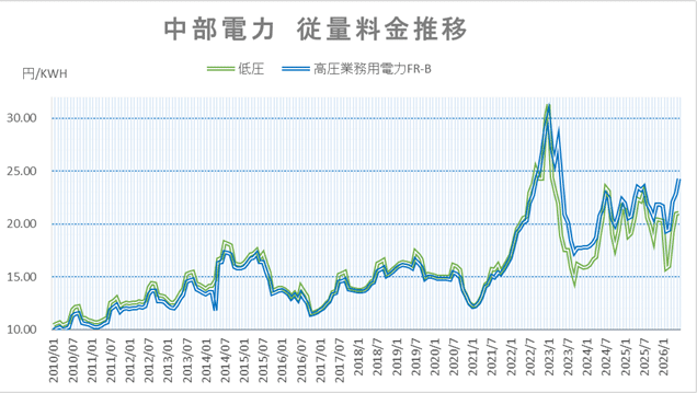 【中部電力】高圧・低圧ともに右肩上がりが鮮明